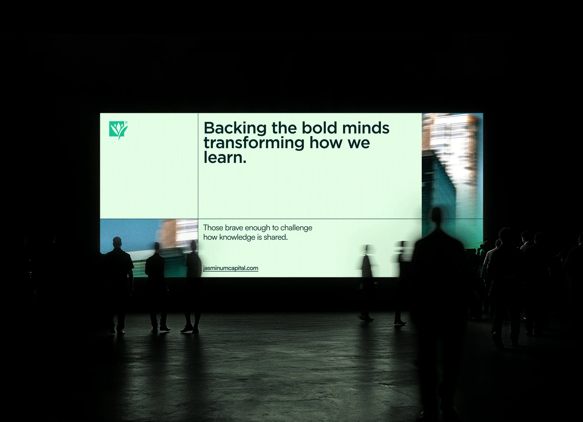 Motion is used within imagery with purpose—subtle, directional, and meaningful. It reinforces the brand’s forward energy and evokes a sense of momentum without distraction. Movement suggests progress, transformation, and clarity in action—mirroring the ambitions of the founders Jasminum Capital supports. Whether it’s a shifting light, a slow pan, or a transitional blur, motion helps communicate ideas in progress and the evolving nature of learning itself.